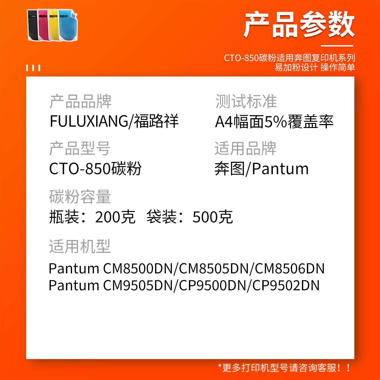 CM8500DN CTO CM8506DN CP9500DN彩色复印机墨粉 850KCMY碳粉 CM9505DN 适用奔图CM8505dn碳粉CP9502DN添加粉