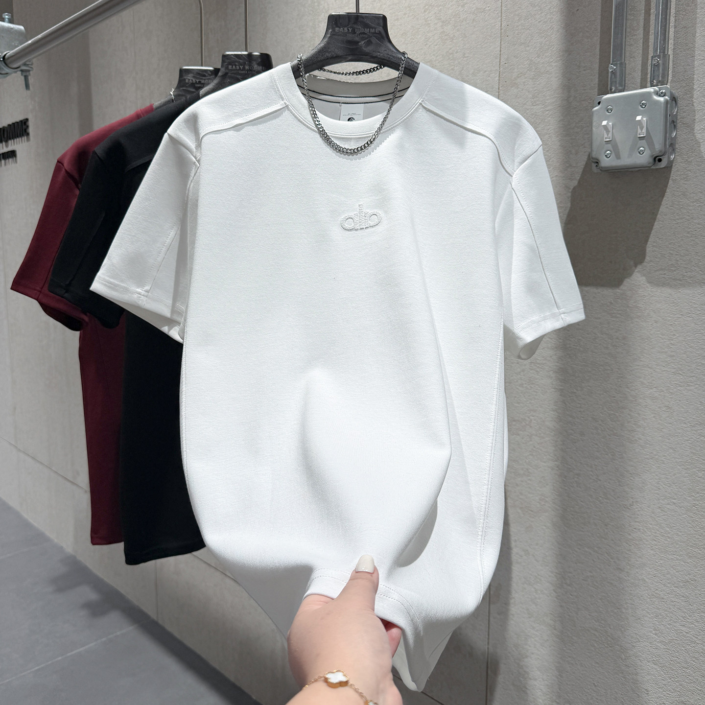 短袖 冬季 字母刺绣小标立体剪裁红色新年款 简约风t恤男个性 重磅款