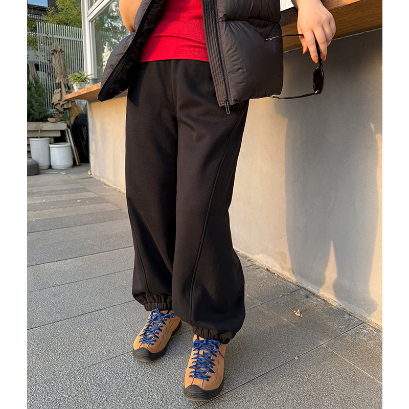 胖mm慵懒风松弛感加绒运动休闲裤 大码 女冬季 奶芙阔腿裤 子 黑色卫裤