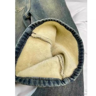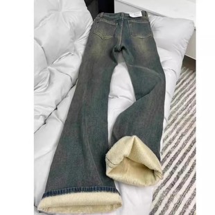 胖mm高腰遮胯显瘦喇叭马蹄裤 复古蓝加绒加厚微喇牛仔裤 女秋冬大码