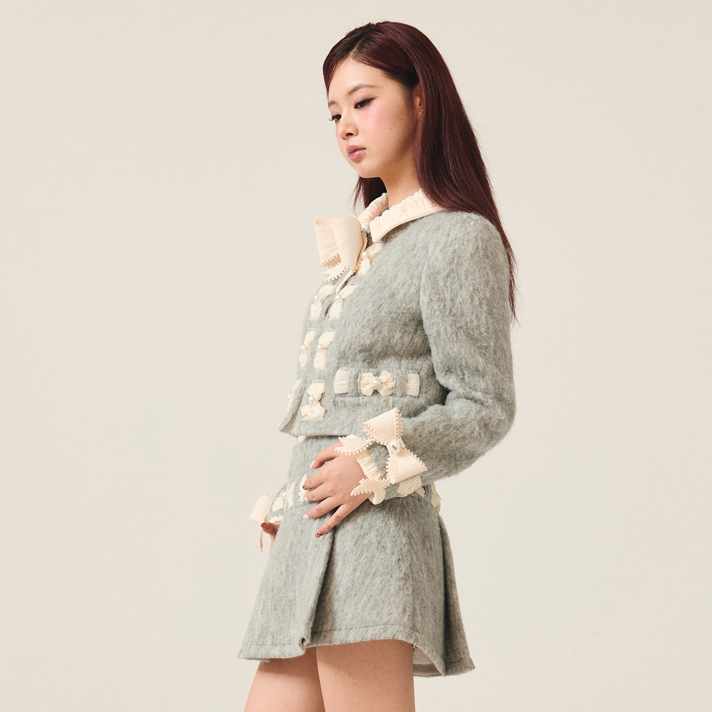 复古摩登千金风毛呢撞色短外套上衣 时尚 lefame拉飞姆2025冬季 新款