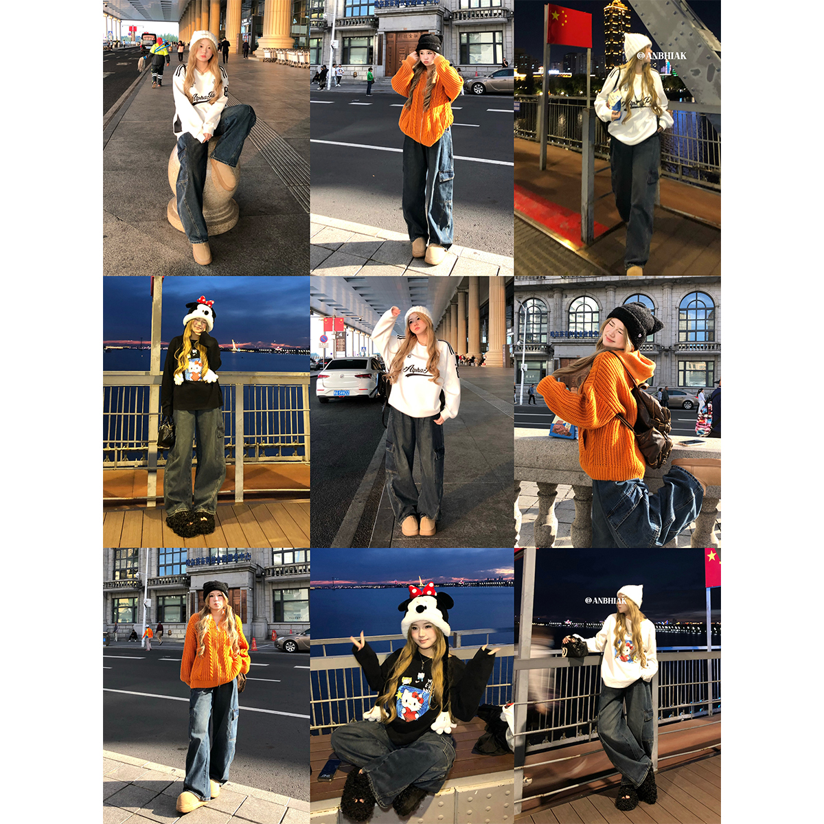 dannyandzee秋冬复古百搭宽松小直筒蓝色竖条纹水洗印花牛仔裤 男