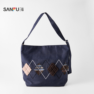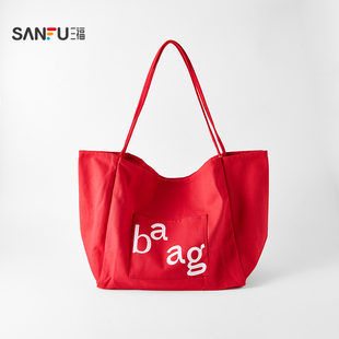 三福英文字母帆布包休闲时尚 845570 帆布袋简约托特大包包2025新款