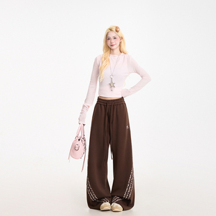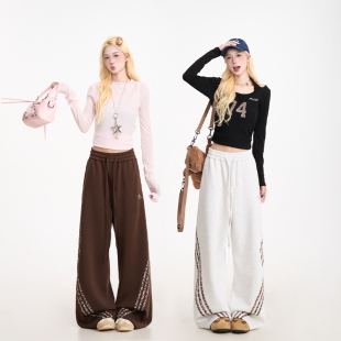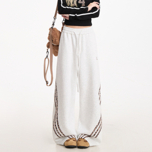 垂感阔腿休闲裤 复古直筒运动裤 女美式 NERESUM豹纹三条杠拼接卫裤