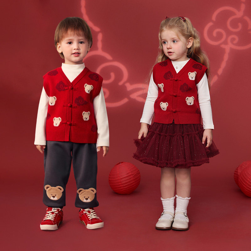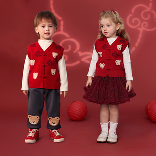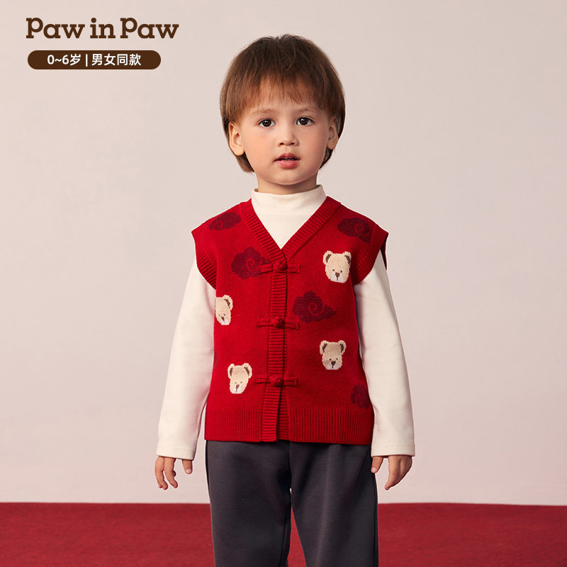 男女宝宝新中式 26年新款 PawinPaw卡通小熊童装 马甲 新年