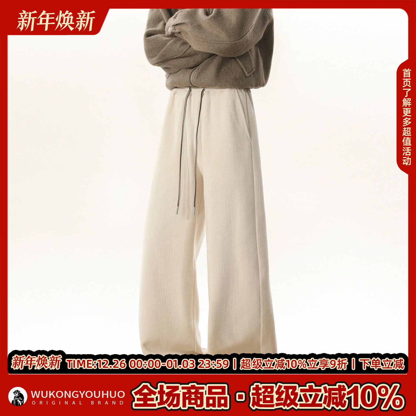 宽松阔腿保暖百搭长裤 男女美式 高级感加绒休闲裤 悟空有货潮牌冬季