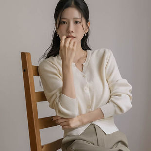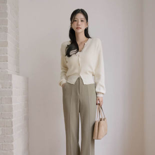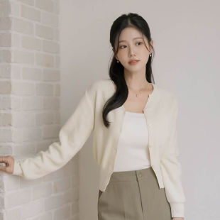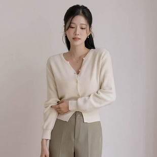时尚 od25100912 起义韩国甜美2030秋冬小V开口领轻薄开襟针织衫
