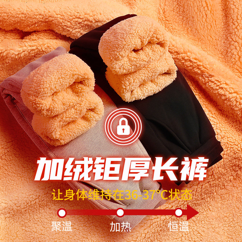 重磅大码 学生保暖棉裤 男士 收脚长裤 子潮 羊羔绒加绒加厚款 回力冬季