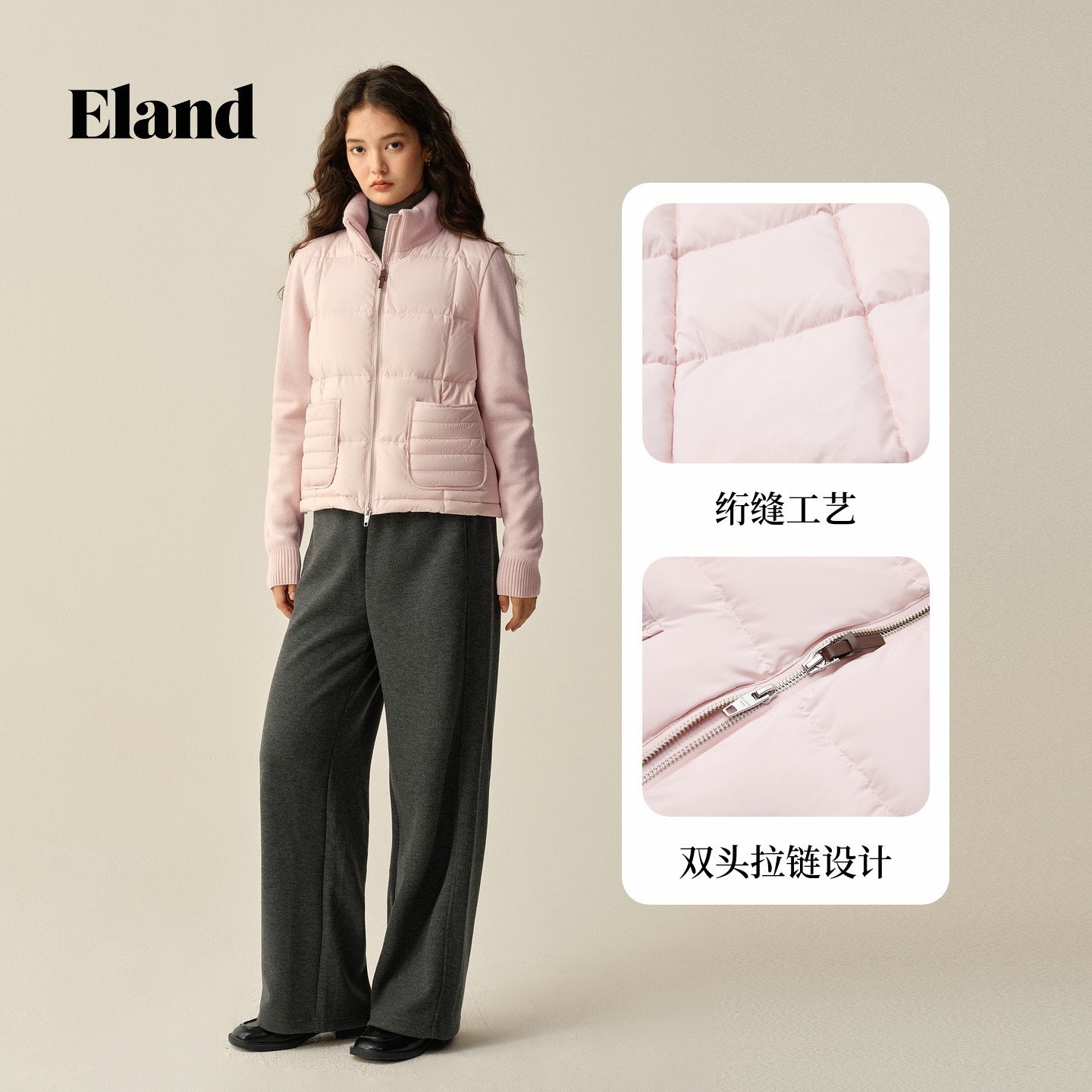 外套2025冬季 Eland衣恋鸭绒服女高领短款 新款 特氟龙三防&羽绒
