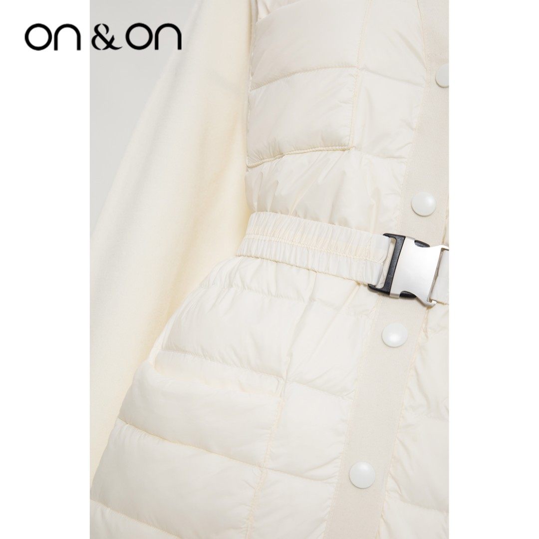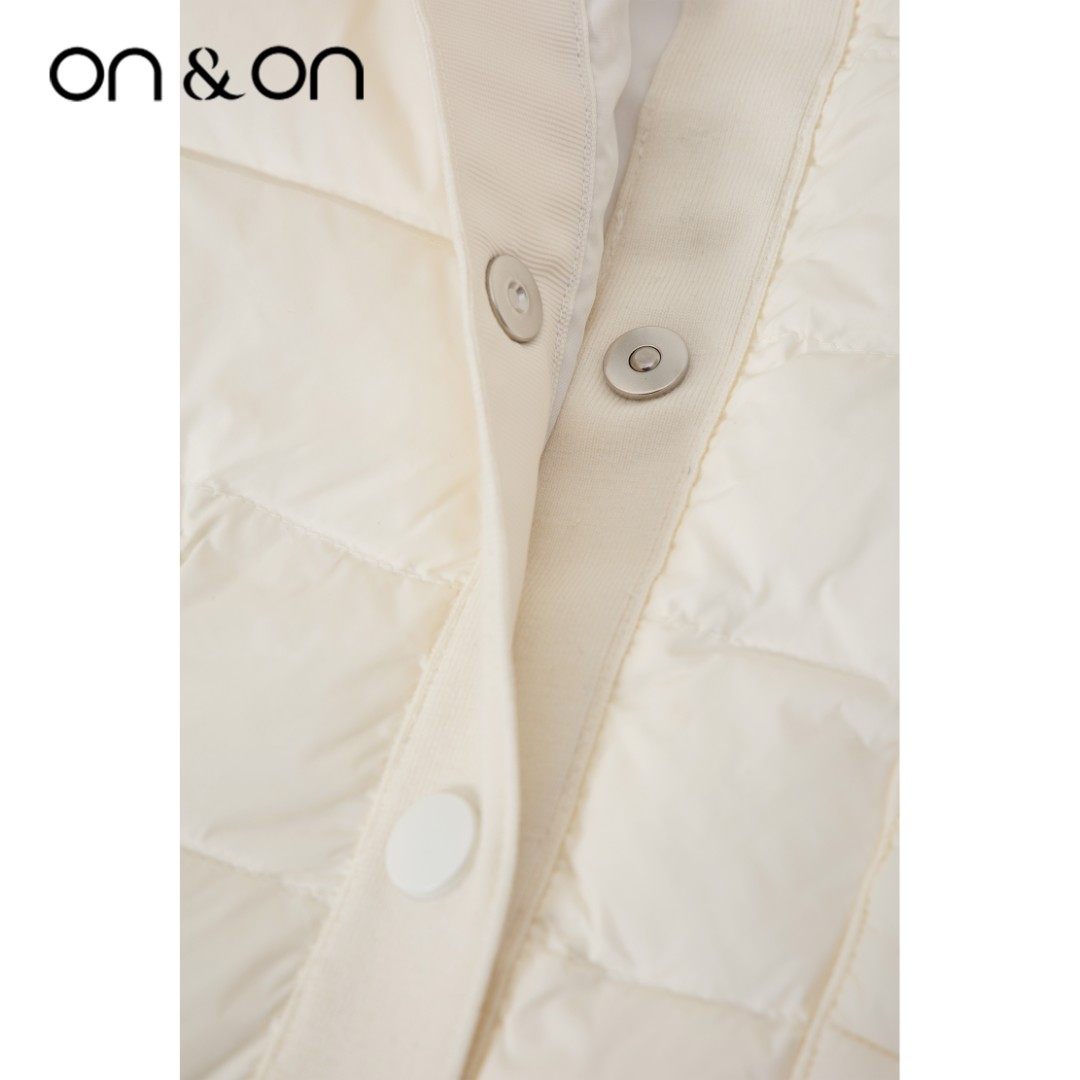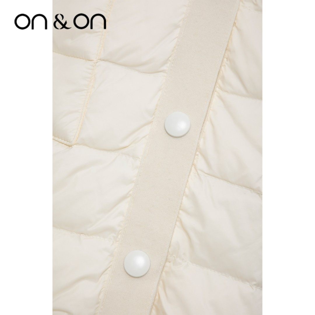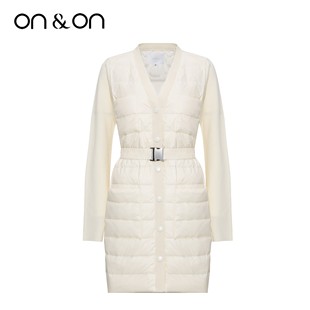 韩系简约时尚 闲鱼 V领松紧系带保暖舒适羽绒服女 安乃安 ON&ON