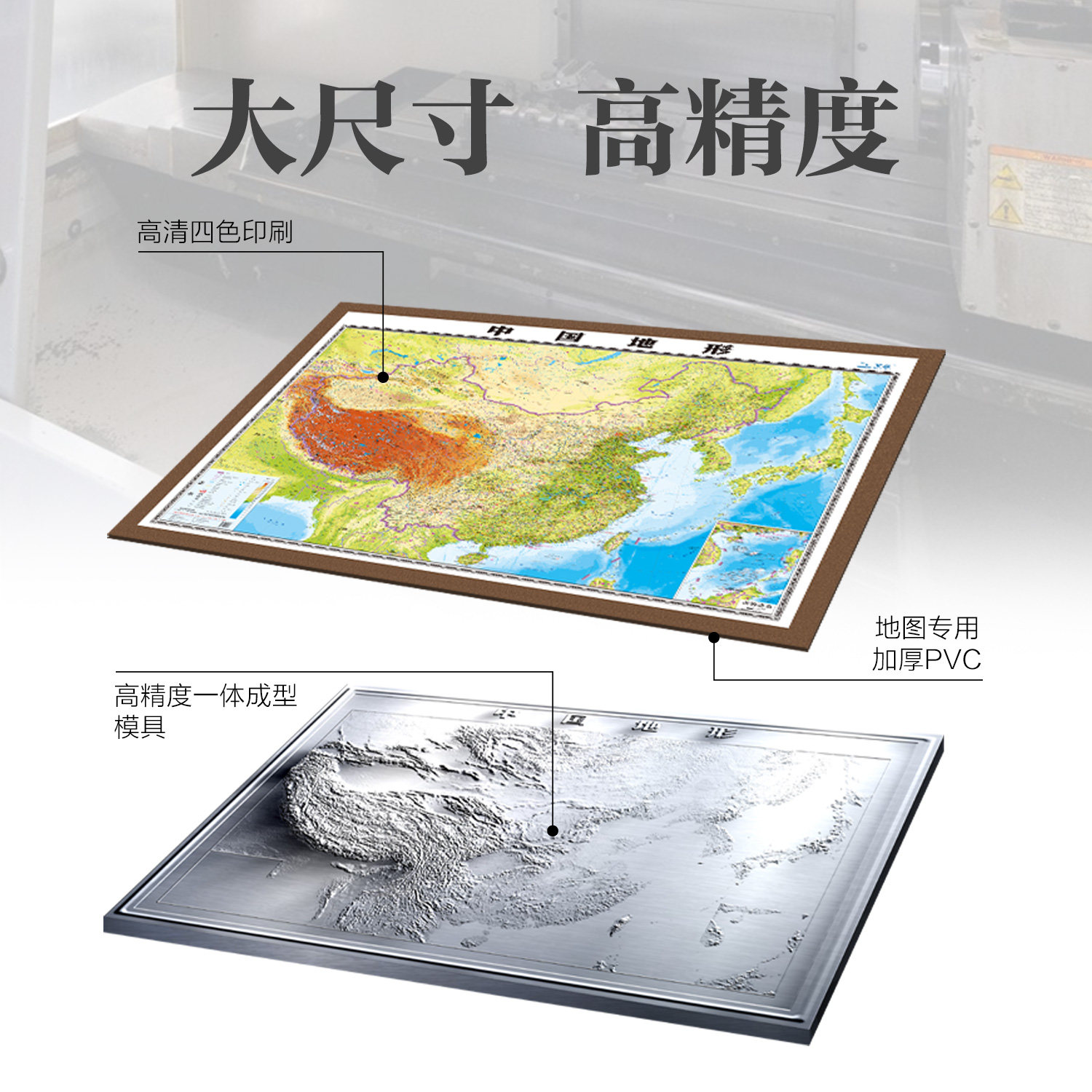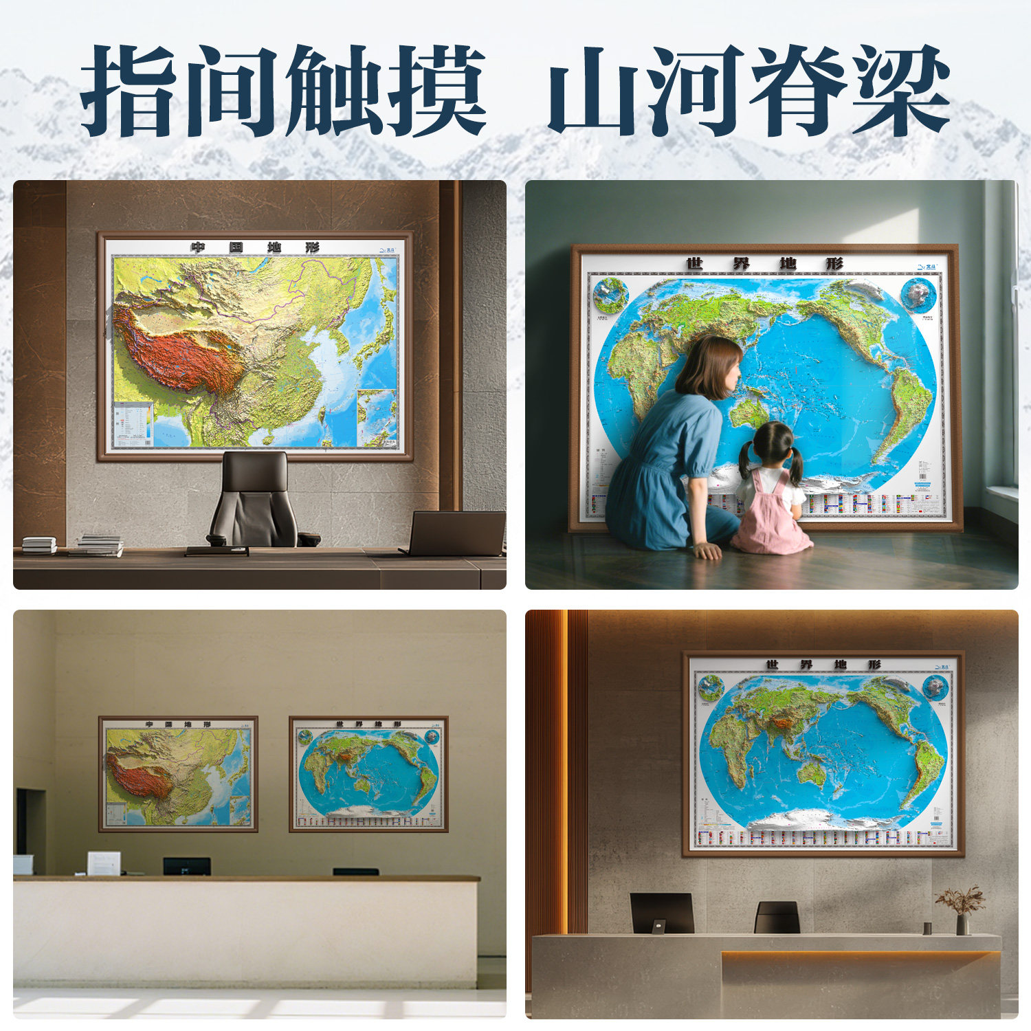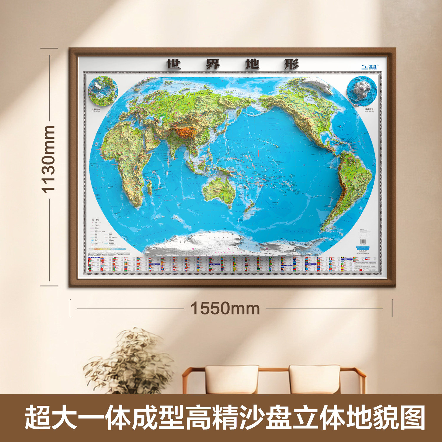 地图世界和中国地图 北斗3d立体凹凸地形图 饰画墙贴防水 1.6米精雕版 学生用图 办公家用装 2025年新版 1.13米大尺寸挂图 1.55
