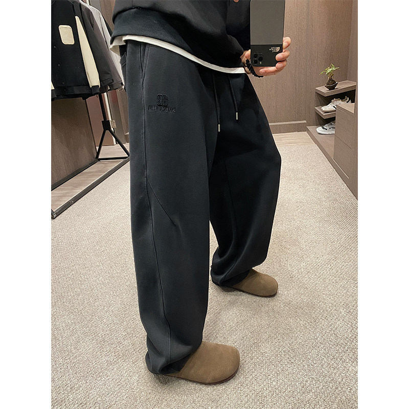 宽松黑色休闲裤 加绒卫裤 子女秋冬运动裤 灰色弯刀裤 长裤 oneup美式