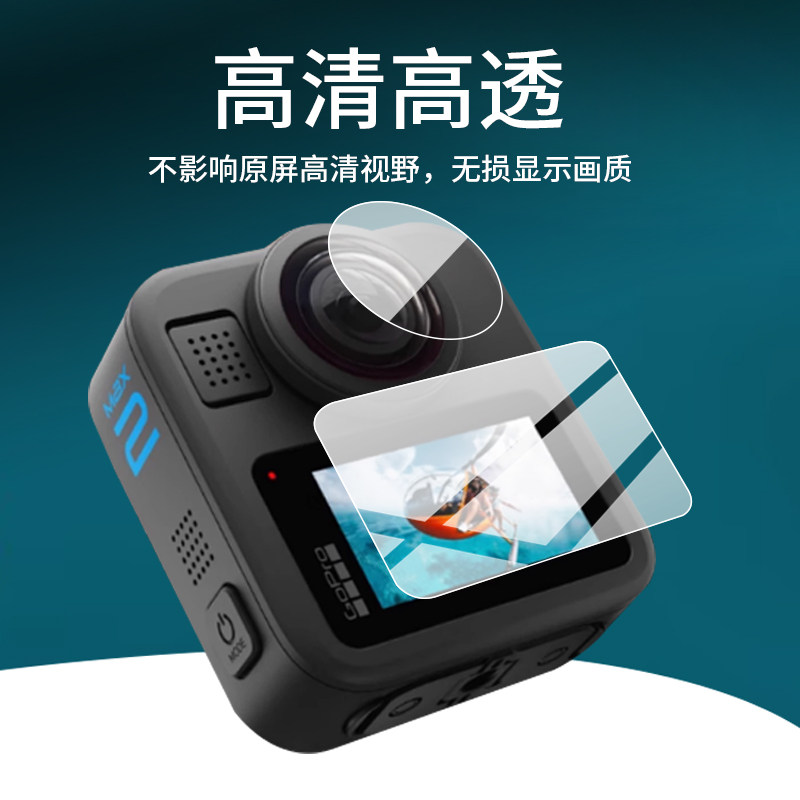 适用GoPro 摄像机保护膜8K摩托骑行车记录仪屏幕贴膜配件 MAX2运动相机钢化膜360全景相机镜头膜GoProMAX2数码