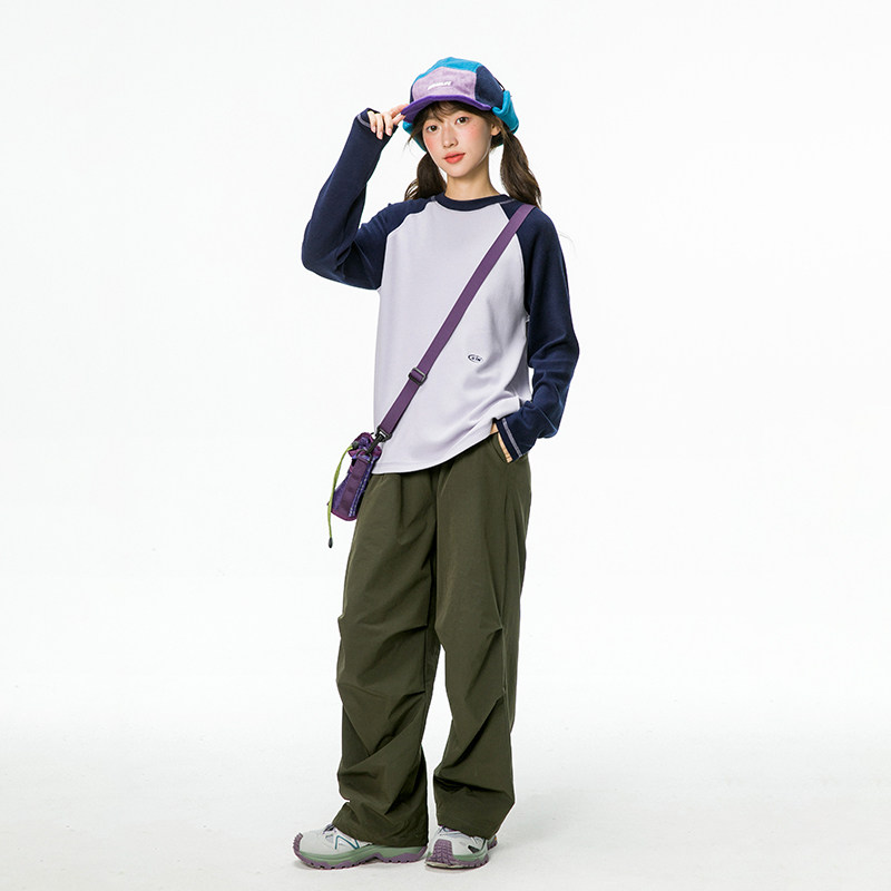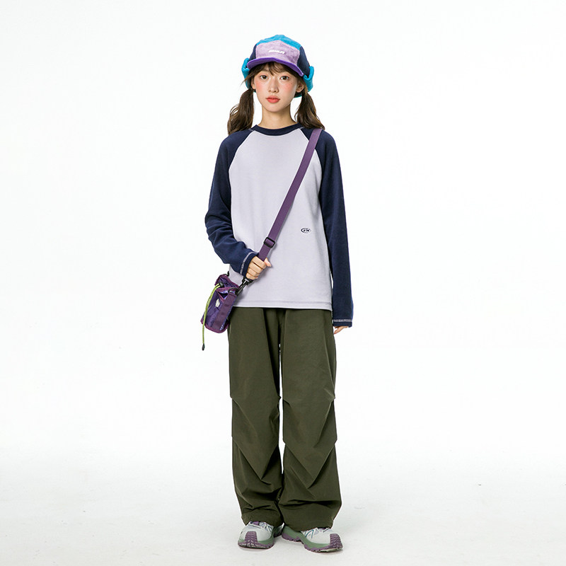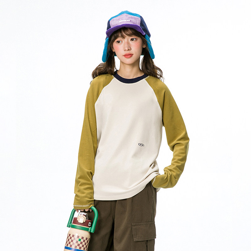 诺诺公主S1N初中生山系户外拼色打底衫 T恤 女春圆领套头设计感长袖