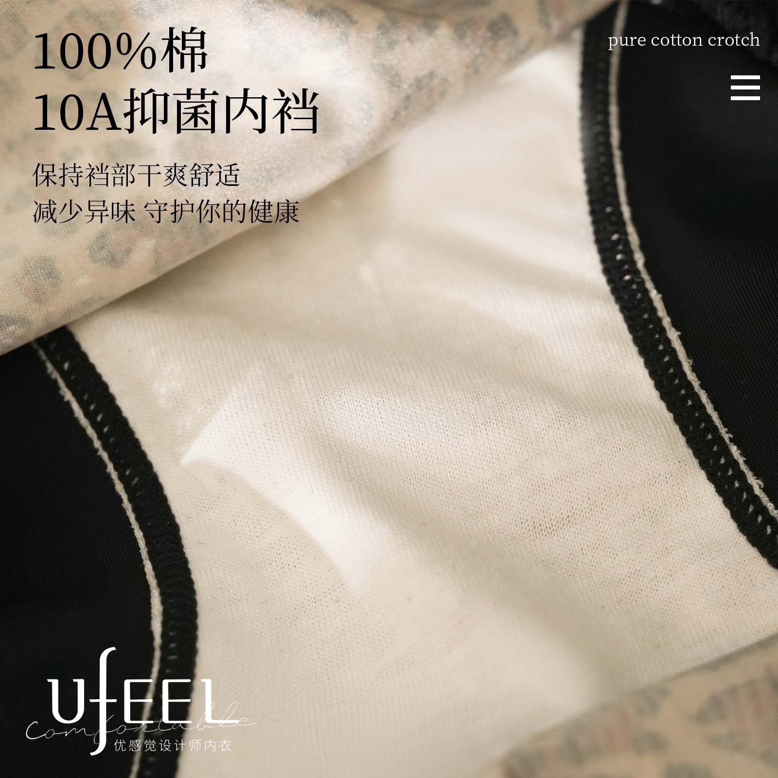UFEEL豹纹性感蕾丝镂空舒适10A抑菌透气薄款 女2553 纯欲中腰内裤