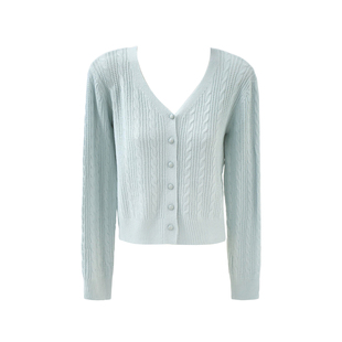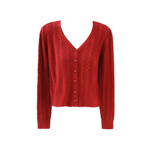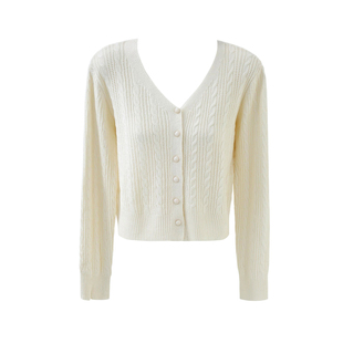 不退不换 2件5折 柔短款 麻花长袖 上衣毛衣开衫 V领针织衫 清仓