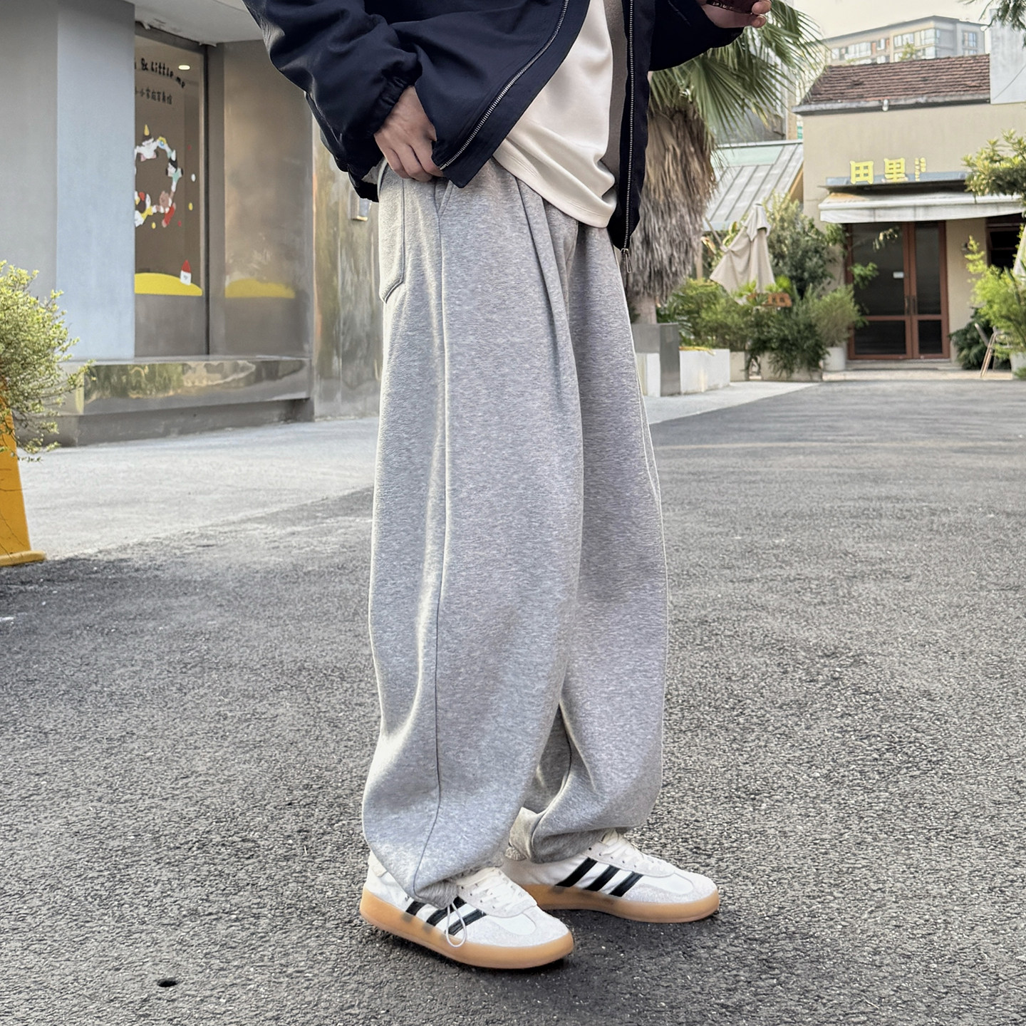 长裤 灰色加绒加厚卫裤 宽松直筒运动工装 秋冬季 子 保暖男生2025新款