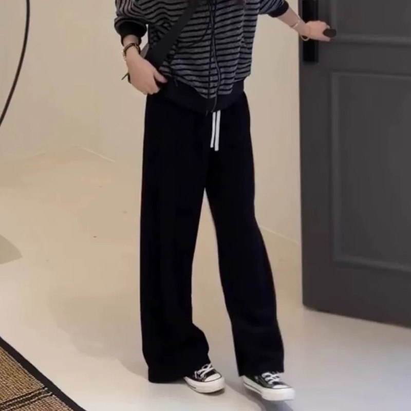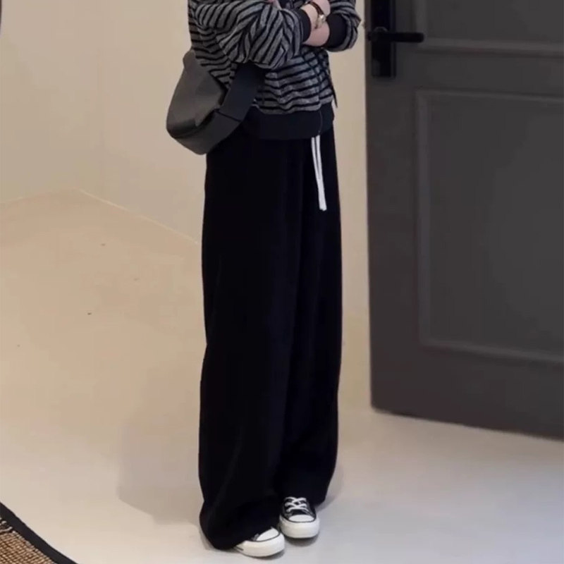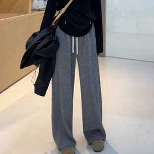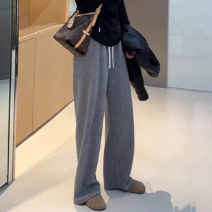 150小个子9分懒惰风糯米阔腿裤 女秋冬加绒加厚灰色百搭直筒休闲裤