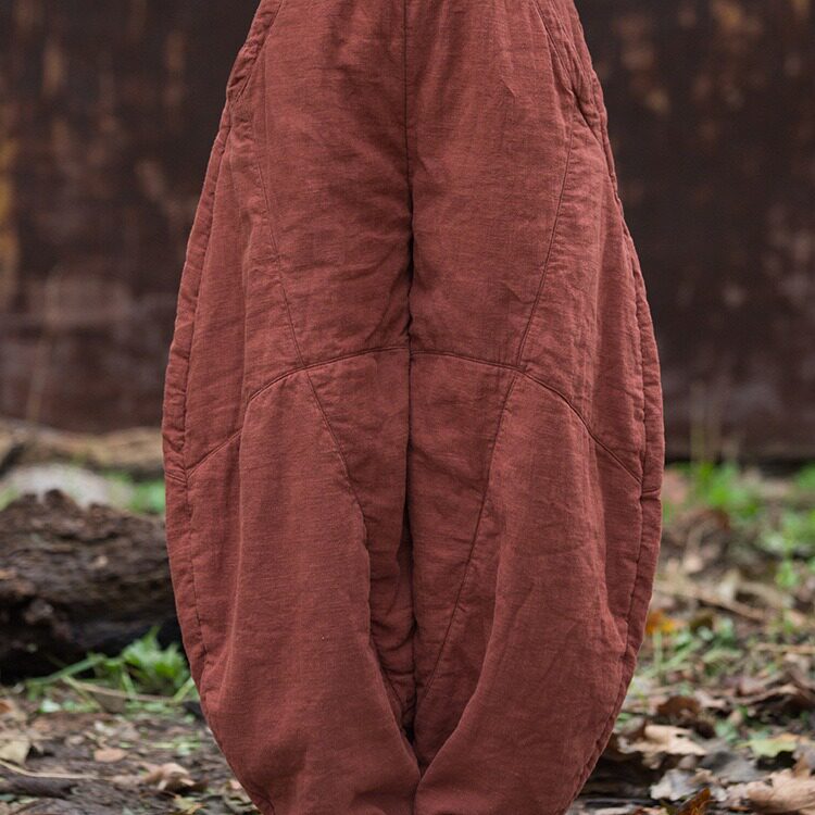禅意太极裤 复古休闲大码 气质棉麻夹棉宽松加厚保暖灯笼裤 时尚 女装