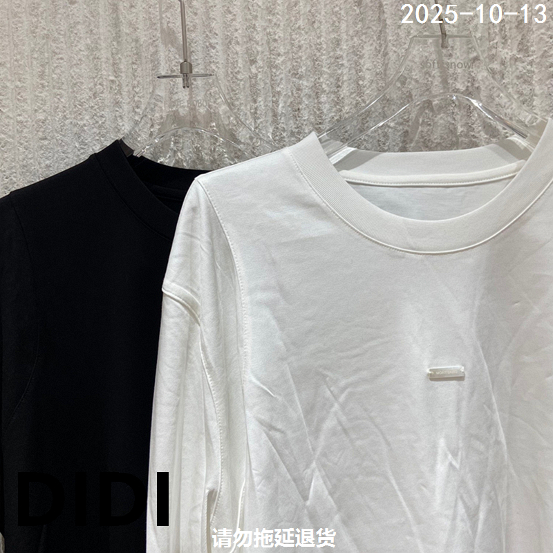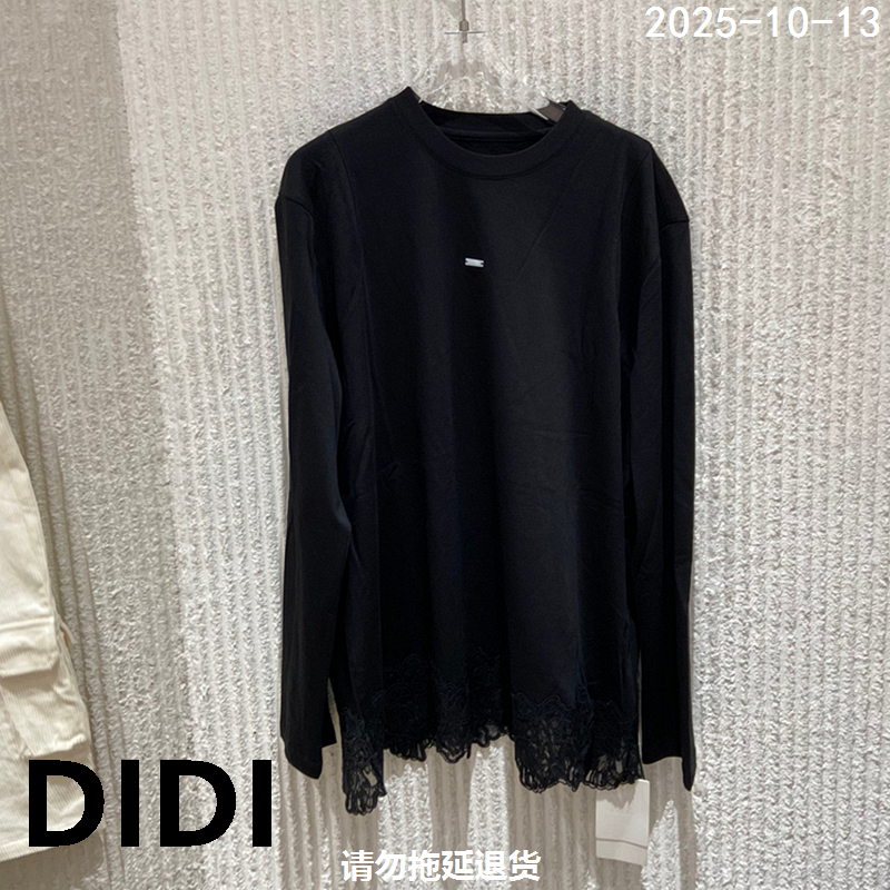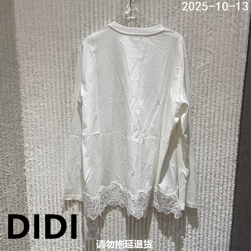 T恤女上衣250929 拼蕾丝下摆圆领纯棉长袖 欧洲站2025秋冬季 新款