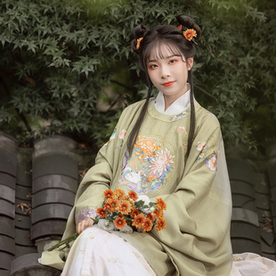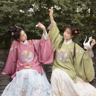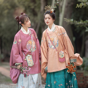 瞳莞原创汉服和蟹如意2025明制圆领大襟大袖 短袄补服绣花新款