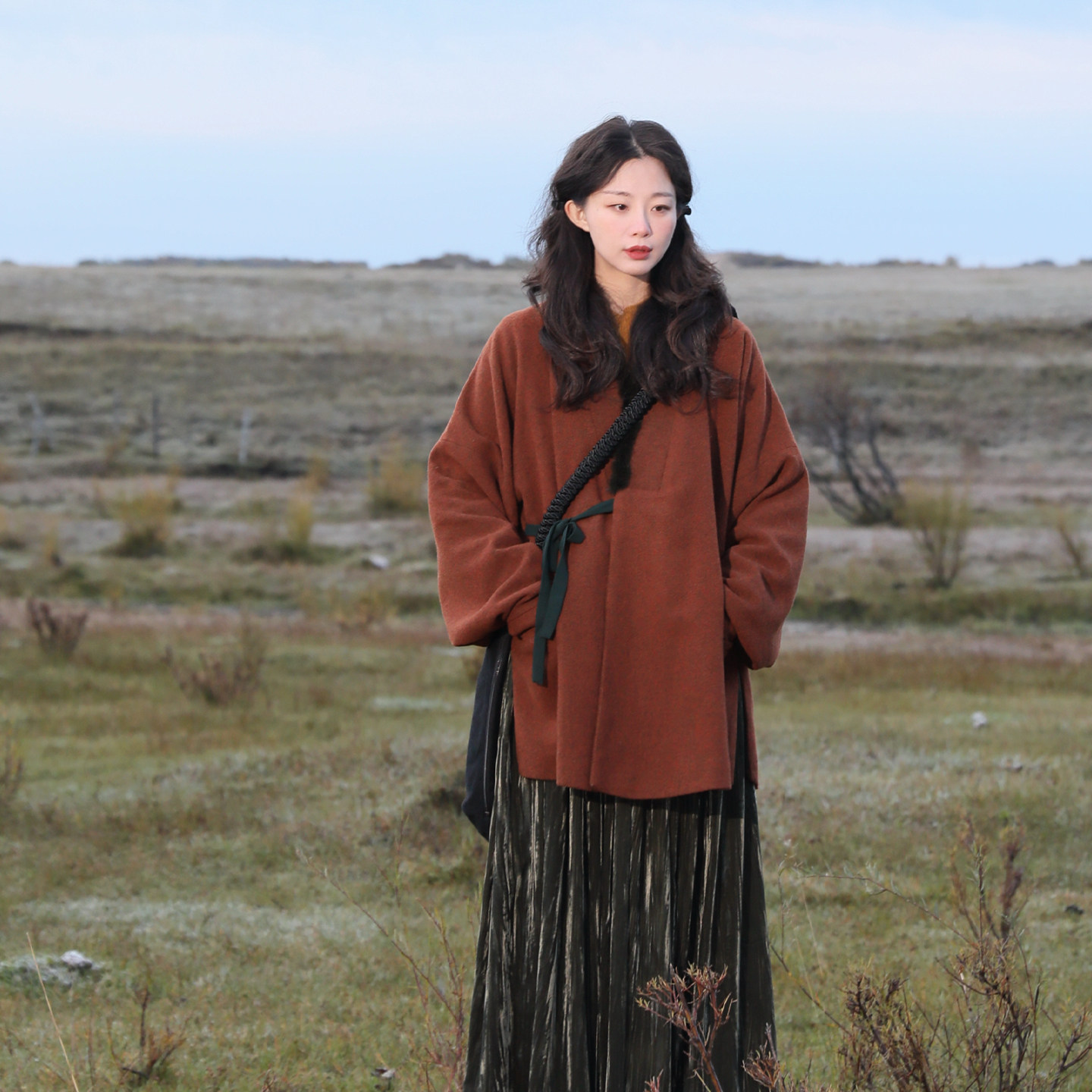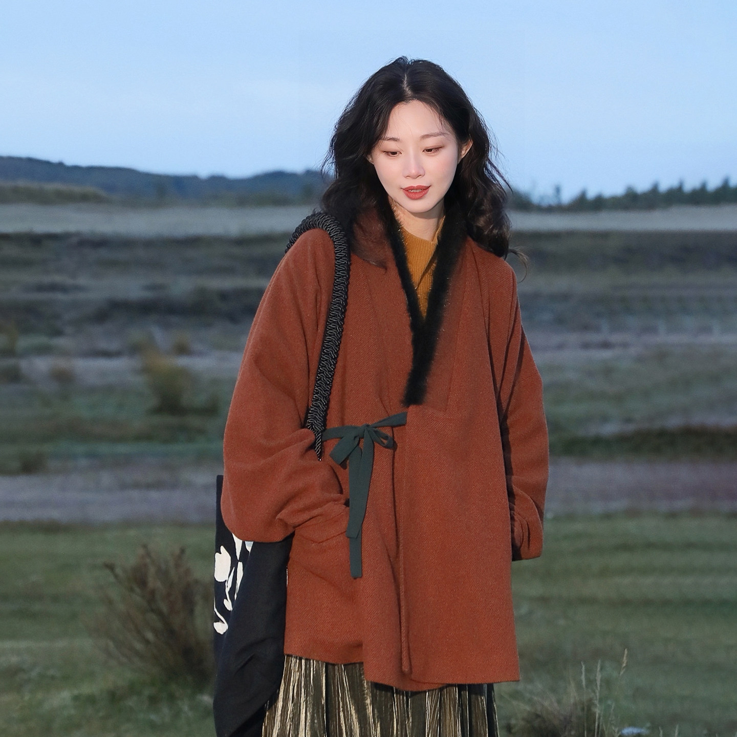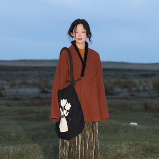 谜阿凰 汉服上衣明短袄羊毛呢水貂毛领原创秋冬保暖女外套 赤灵