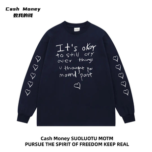 Money数我 圆领上衣休闲打底衫 钱 T恤美式 字母爱心印花长袖 Cash