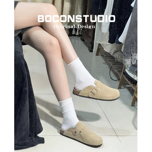 包头半拖鞋 女足弓支撑秋冬博肯鞋 女外穿 厚底真皮勃肯鞋 内增高6cm