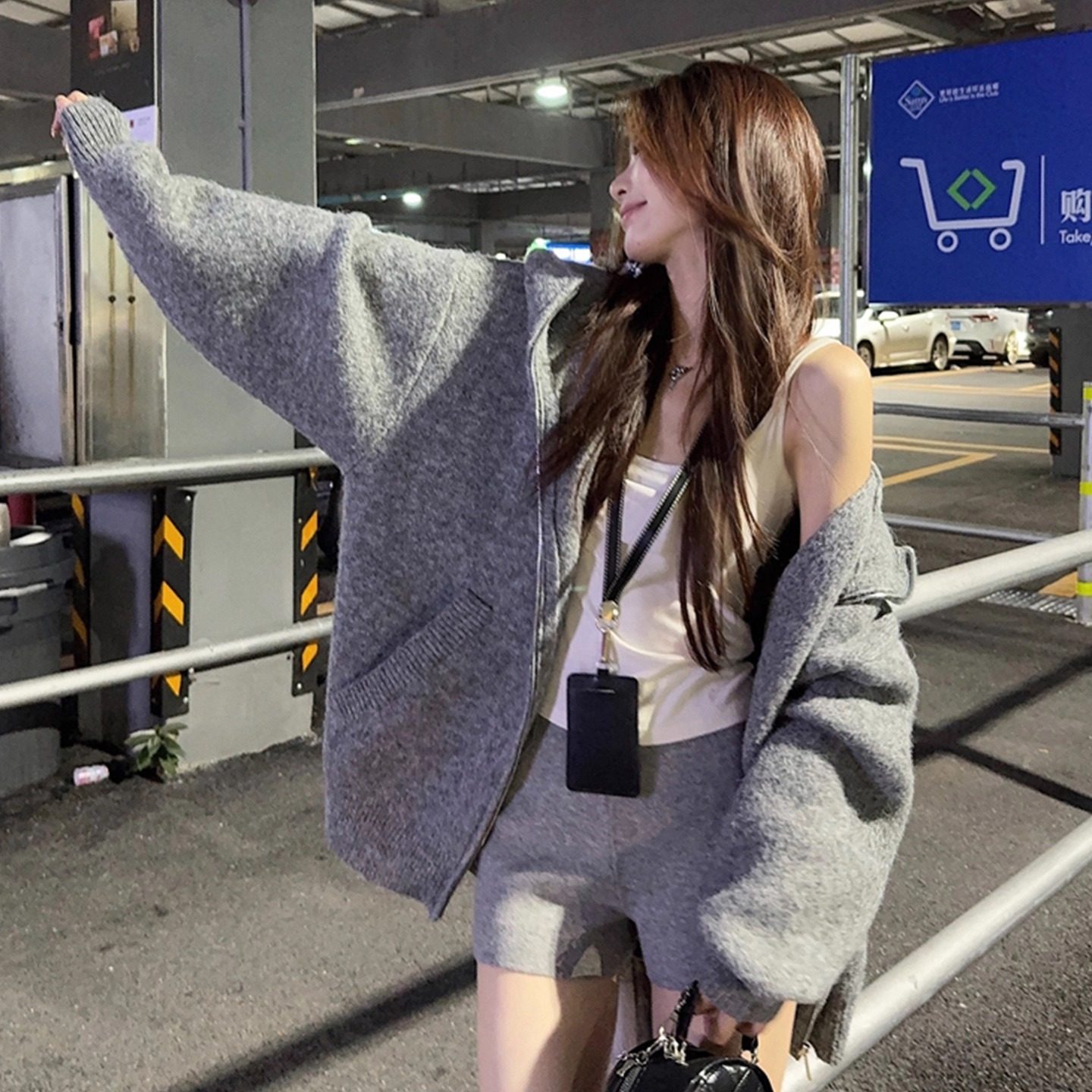 羊绒衫 春秋薄款 圆领宽松短款 女韩版 外搭毛衣外套上衣 羊毛针织开衫