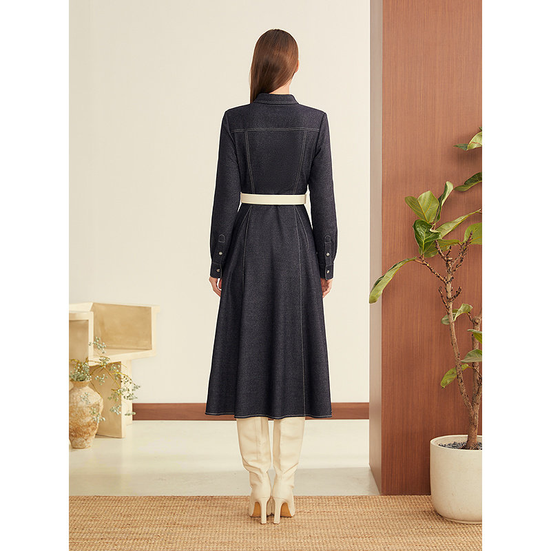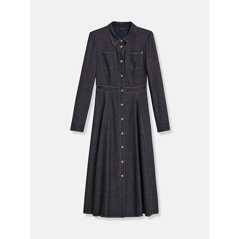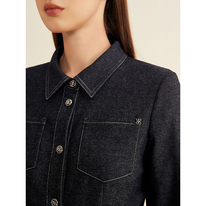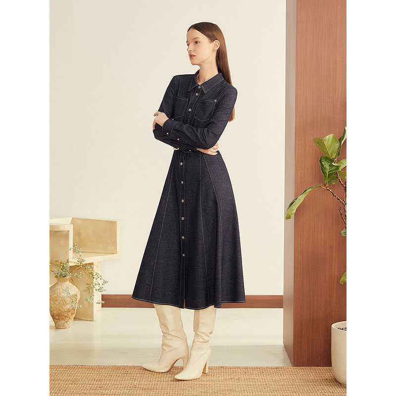 饰扣连衣裙 羊毛混纺仿牛仔肌理翻领金属装 YINER音儿2025冬季 新款