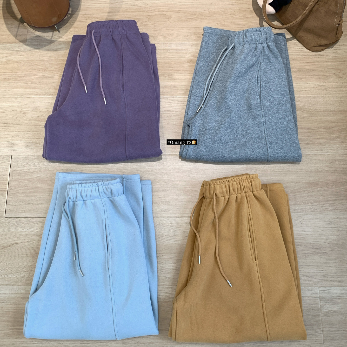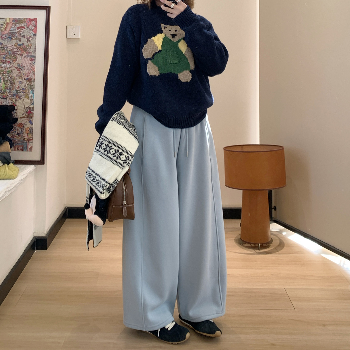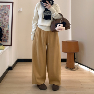 松紧腰休闲慵懒阔腿运动裤 女冬季 小个子加绒弯刀卫裤 Omang桃喜