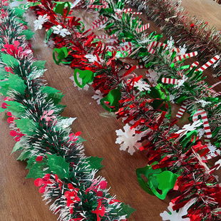 春节节装 饰毛条彩条藤条橱窗场景布置新年店面挂饰雪花拉花吊顶
