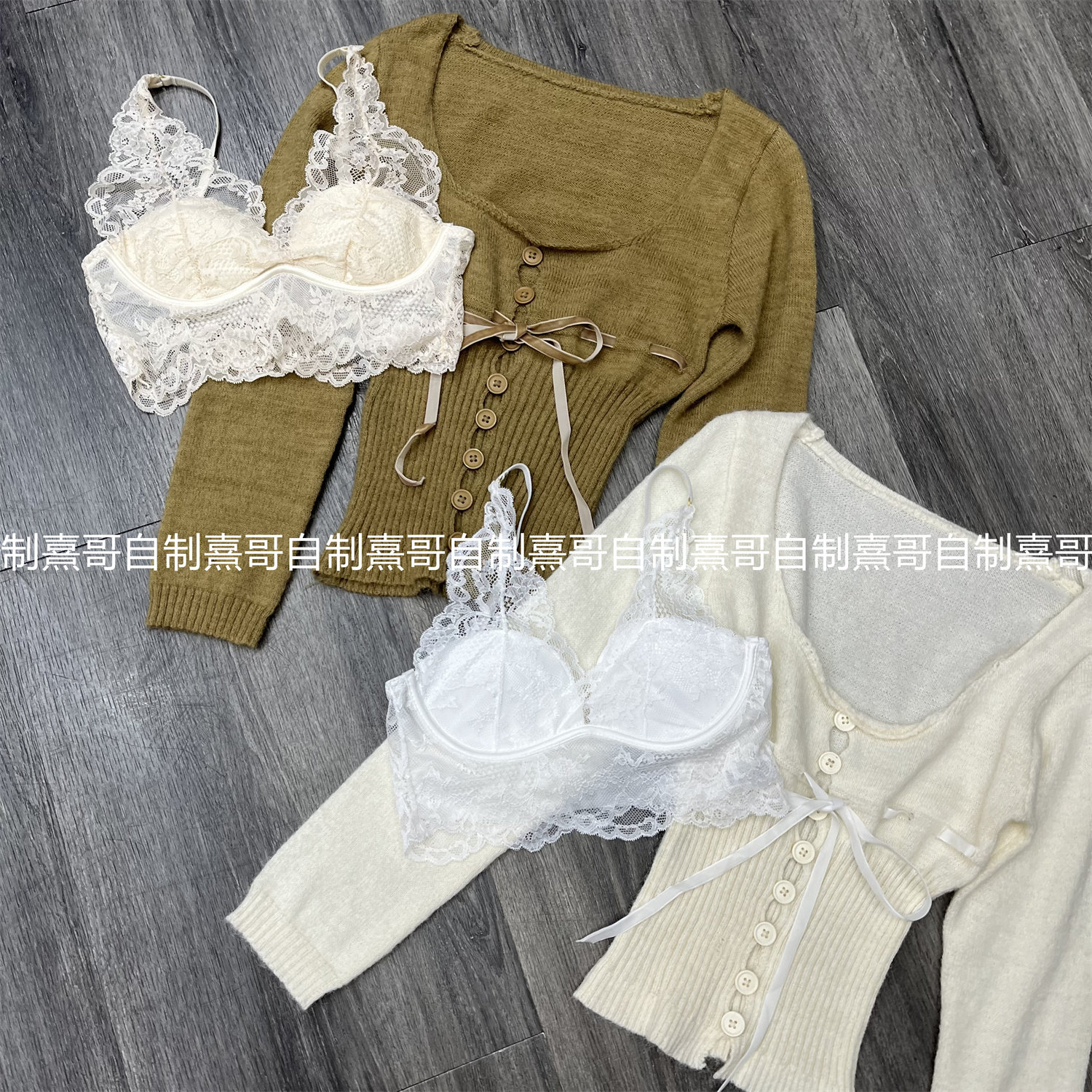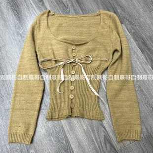 修身 女高端精致两件套冬装 花边挂脖背心上衣 针织衫 纯欲风U领长袖