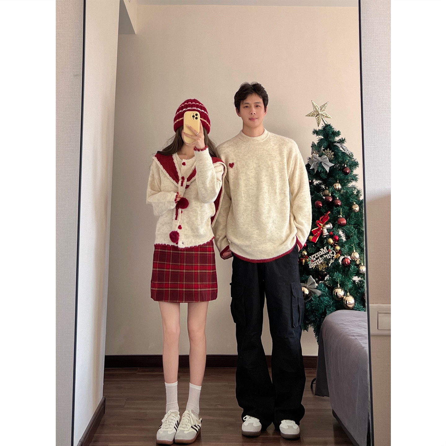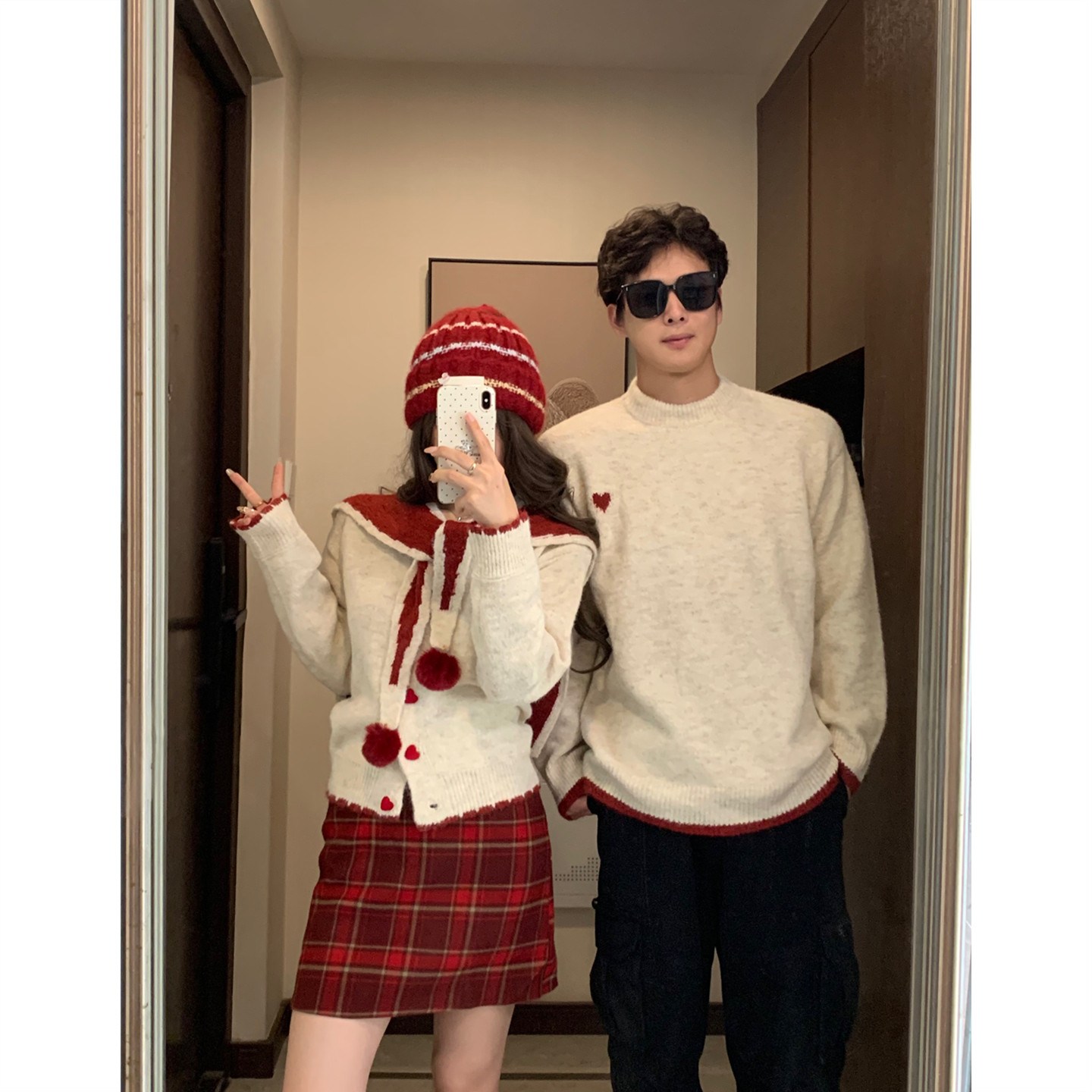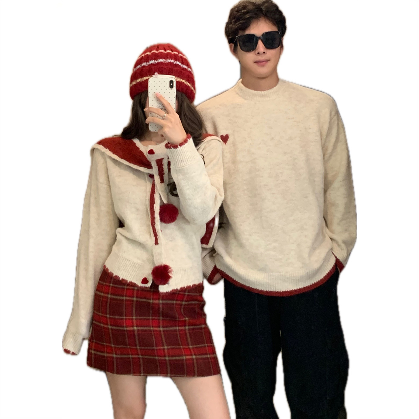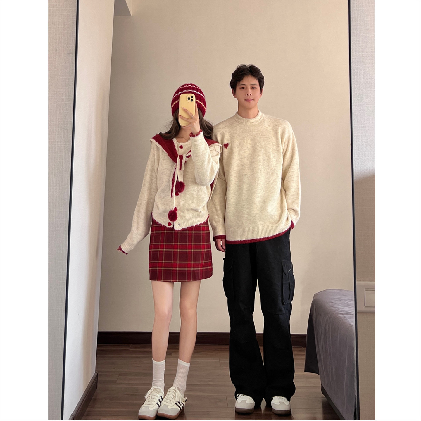 针织衫 情侣装 宽松法式 ins超火红色毛衣男女韩版 外套潮牌 秋冬新款