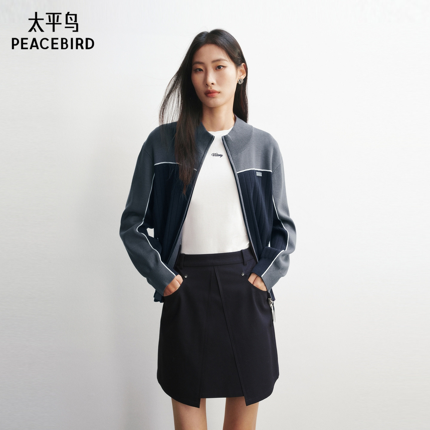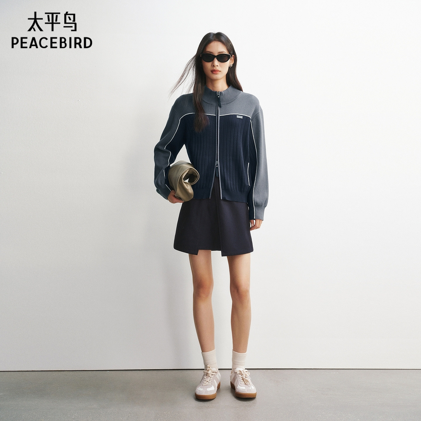 女士撞色双拉链针织开衫 新款 太平鸟26春季 A3EDG1219 商场同款