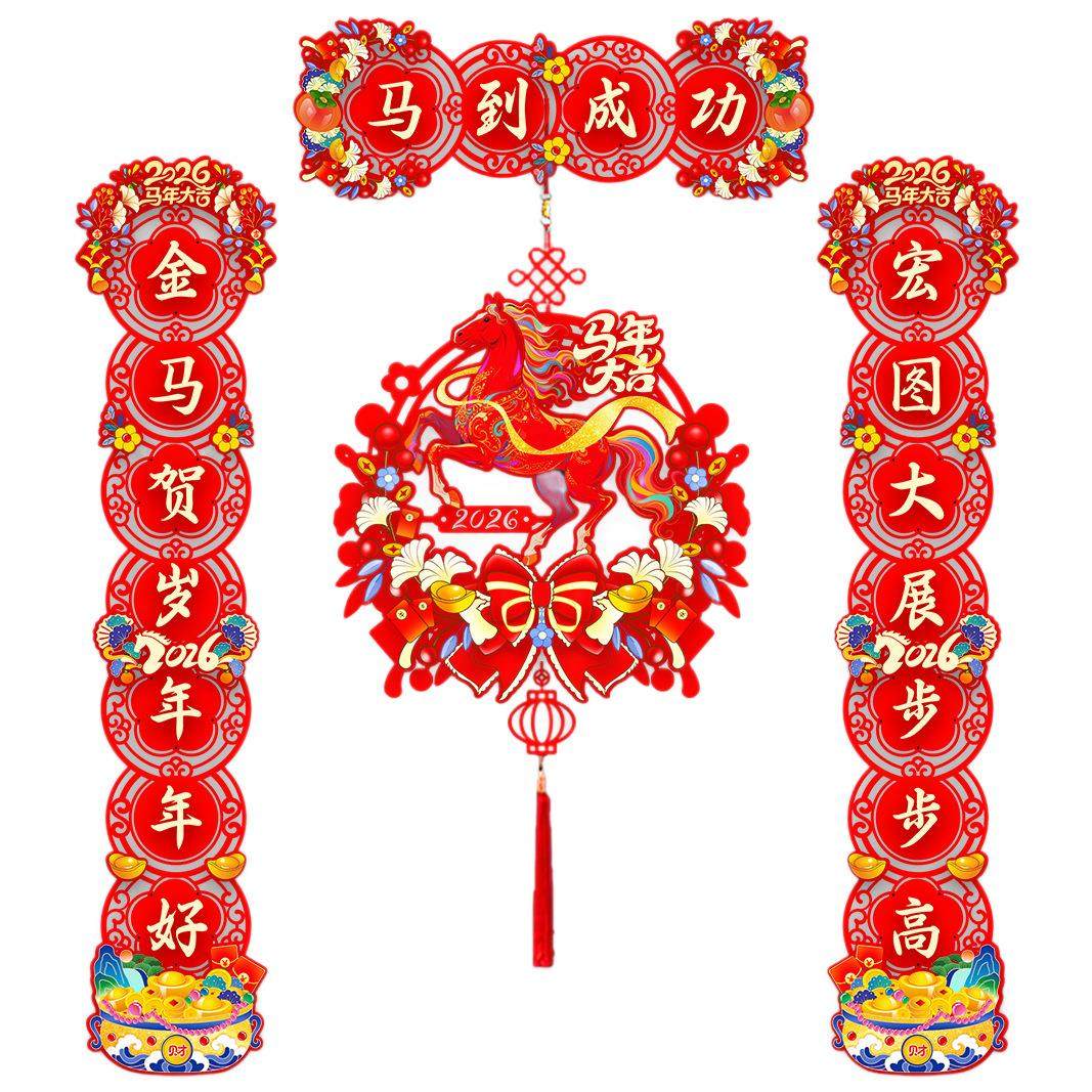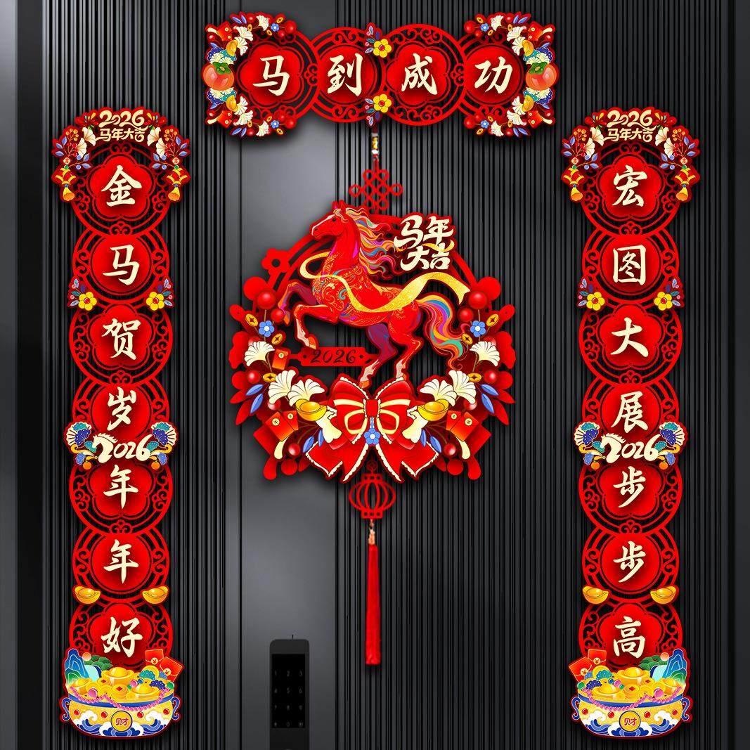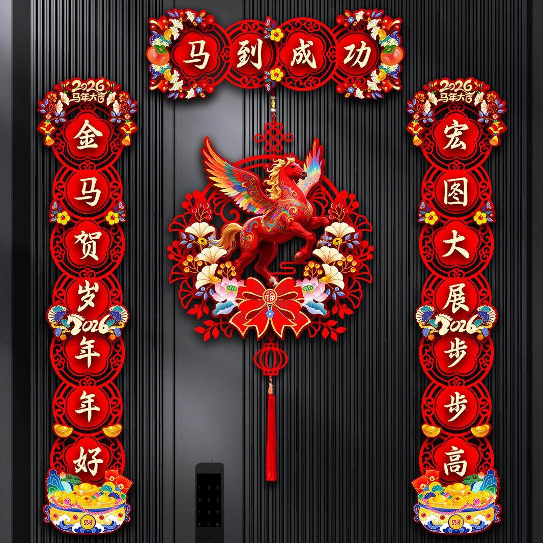 2026马年门贴卡通立体生肖门贴春节过年年画新年用品福字对联窗花