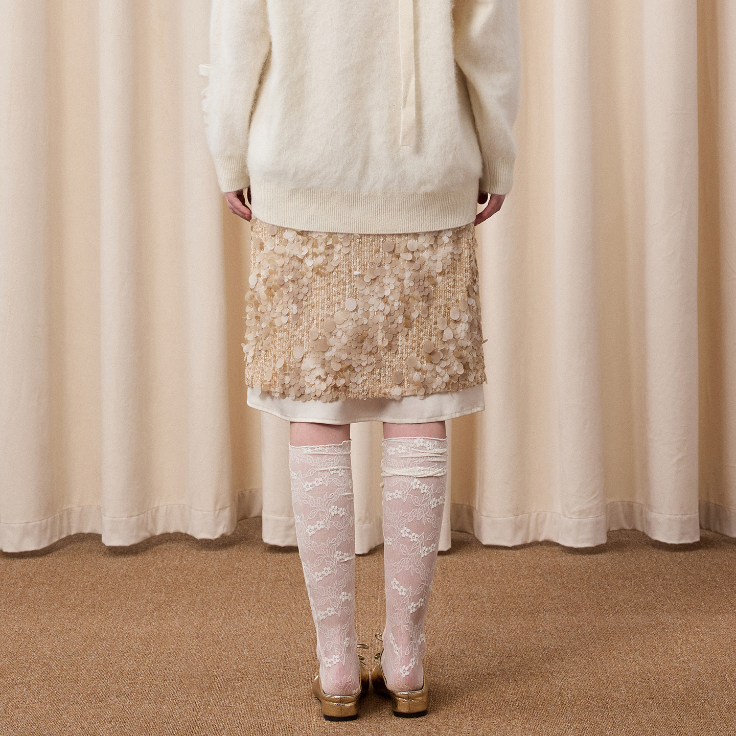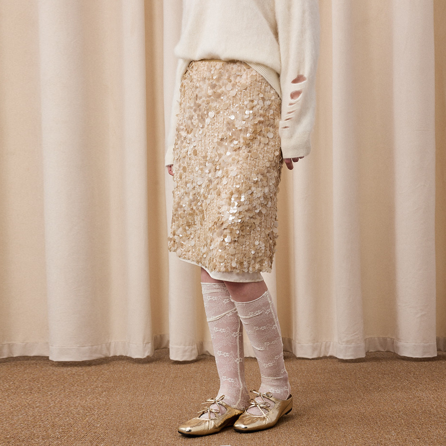 Eimismosol2026新款 亮片中长半身高腰裙女拼接显瘦直筒气质裙