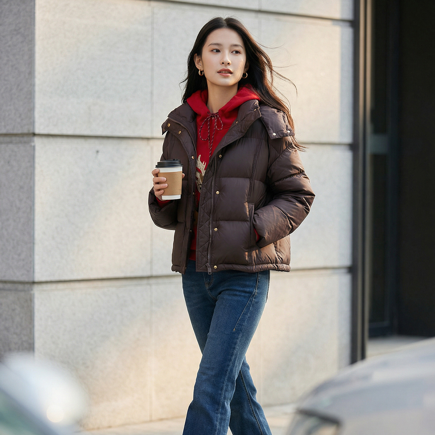 鹅绒服连帽泡芙蓬松保暖羽绒服外套Y107A 短款 EP雅莹2026新款 女装