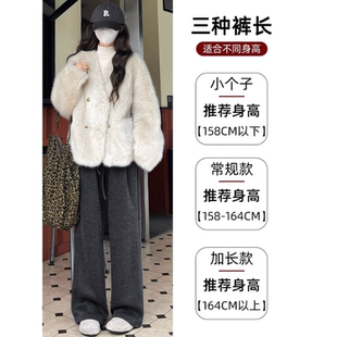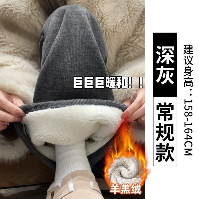 休闲直筒阔腿裤 加绒加厚外穿棉裤 女2025秋冬新款 灰色羊羔绒糯米裤
