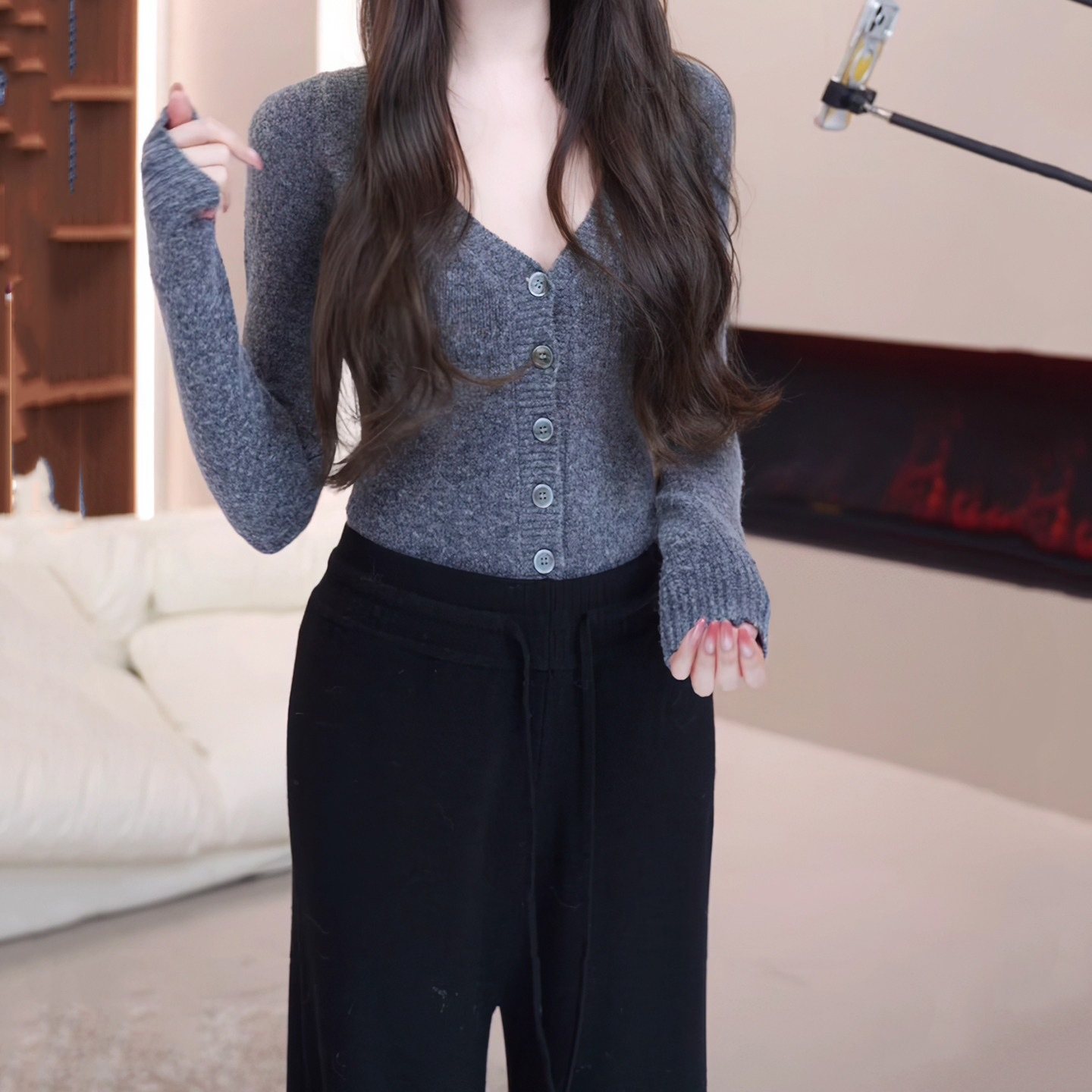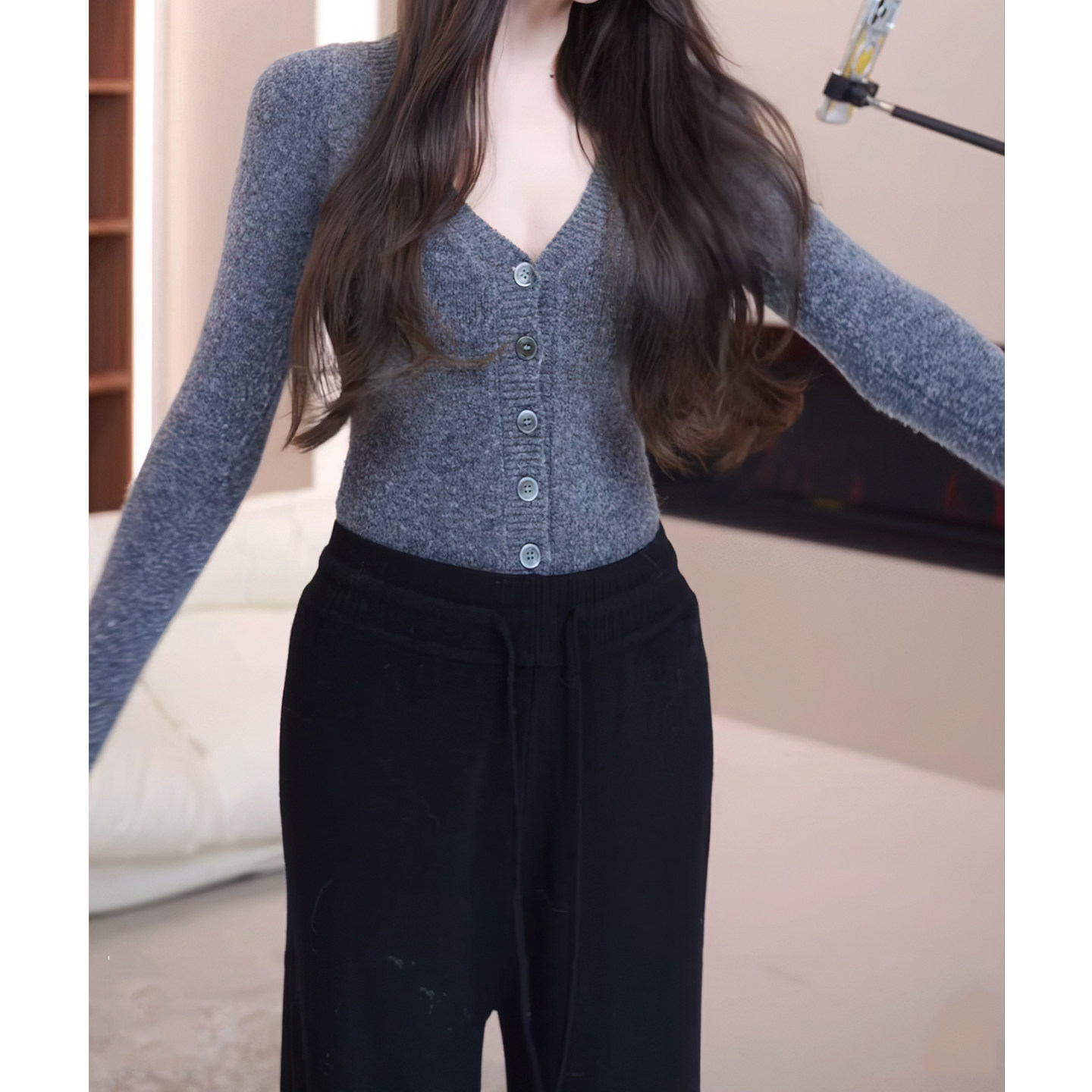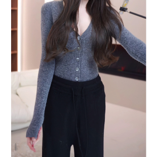 针织衫 温柔纯欲绵羊毛混纺v领连体修身 上衣女 头号甜心 现货