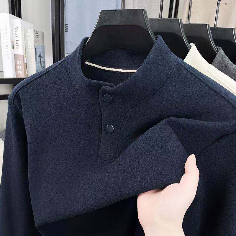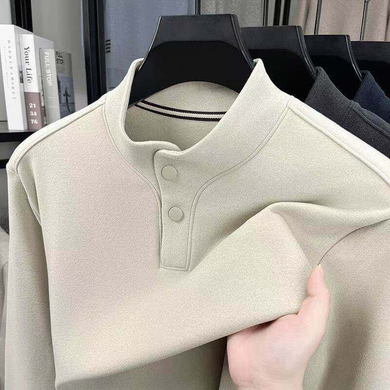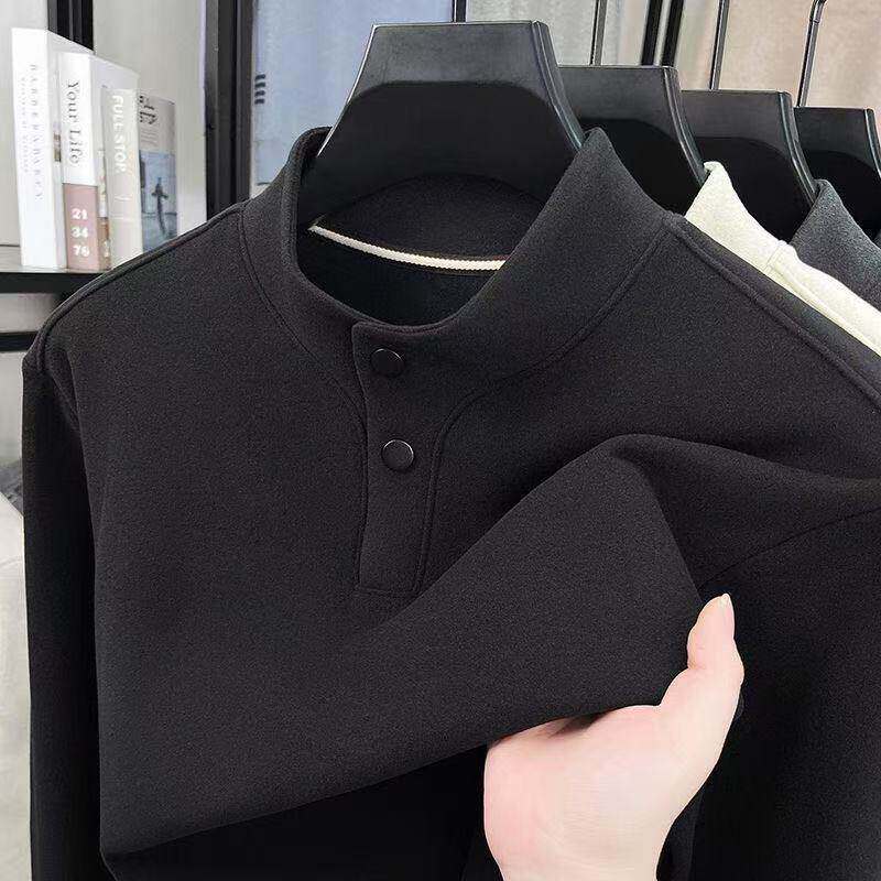 T恤立领纯色男士 保暖打底长袖 上衣内搭 冬季 双面真德绒按扣款