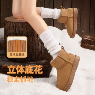 东北雪地靴厚底增高棉鞋 骆驼女鞋 加绒加厚短靴女款 香菇来了