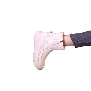 厚底高帮鞋 新款 轻便软底侧拉链短靴 雪地靴女2025冬季 真皮加绒棉鞋