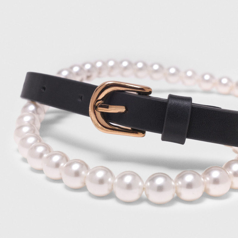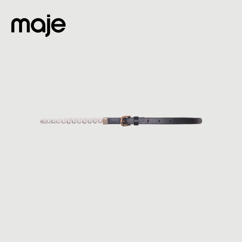 黑色皮革拼接仿珍珠装 Maje2026早春新款 时尚 法式 饰性腰带 女式