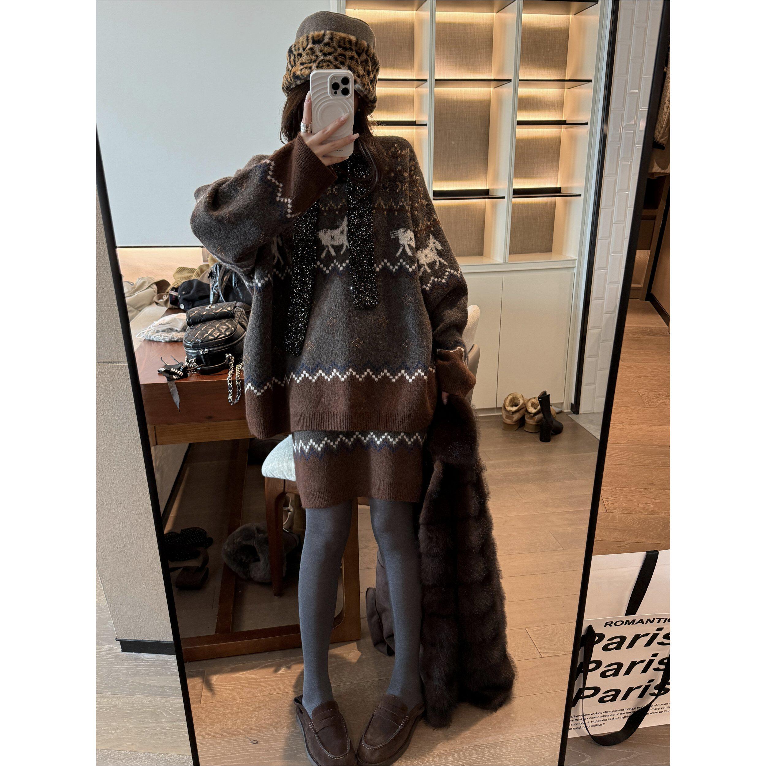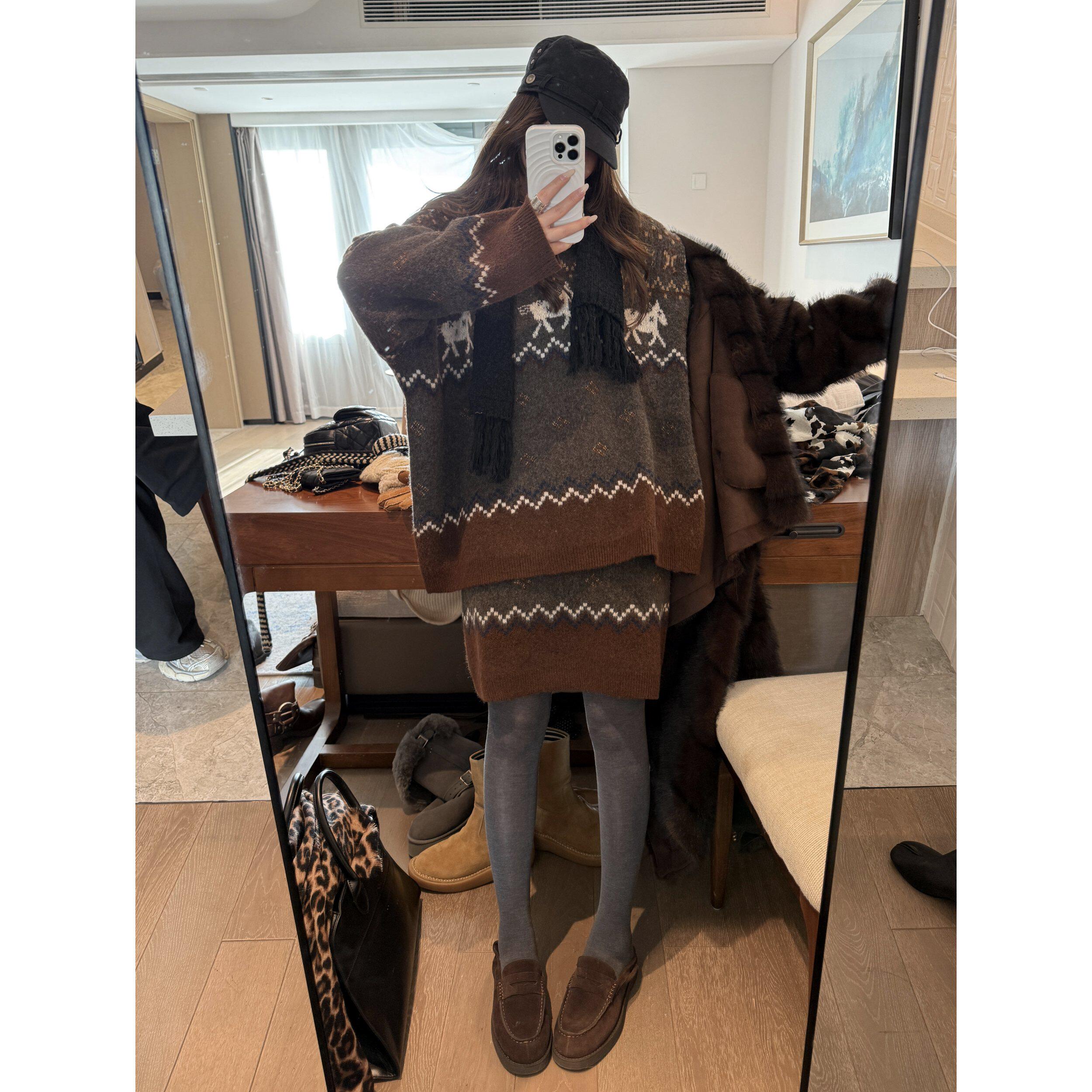 FILLE|费尔岛毛衣短裙套装 氛围感重工复古提花针织慵懒两件套