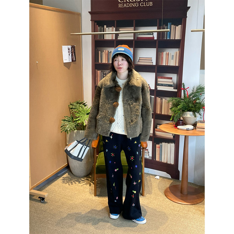 MWEFWWPT1374A 设计师品牌IMMI25AW羊绒双面绣花直筒长裤 现货