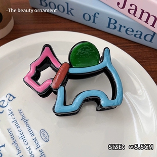 5.5CM撞色卡通蓝粉小狗抓夹 1个装