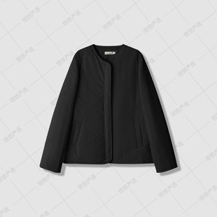 复古菱形格夹棉外套200斤 女装 胖mm冬季 巴恩翻领棉服木子理想大码