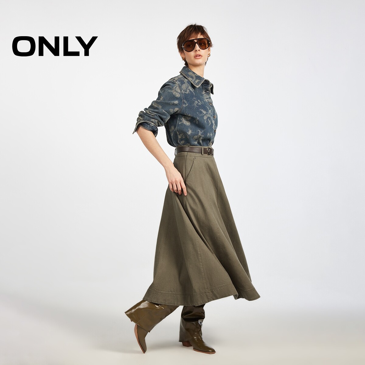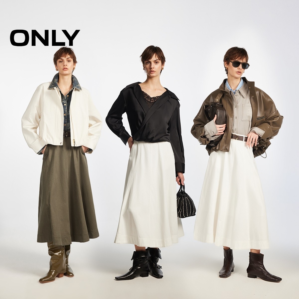 ONLY2026春季 莱赛尔定制质感腰带量感A字解构拼接半身裙女 新款