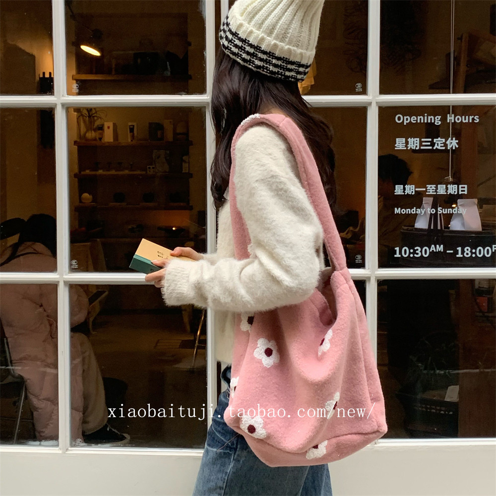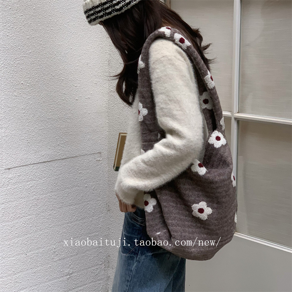 百搭通勤时尚 新款 托特包 毛绒小花单肩腋下包女2025冬季 小白兔几